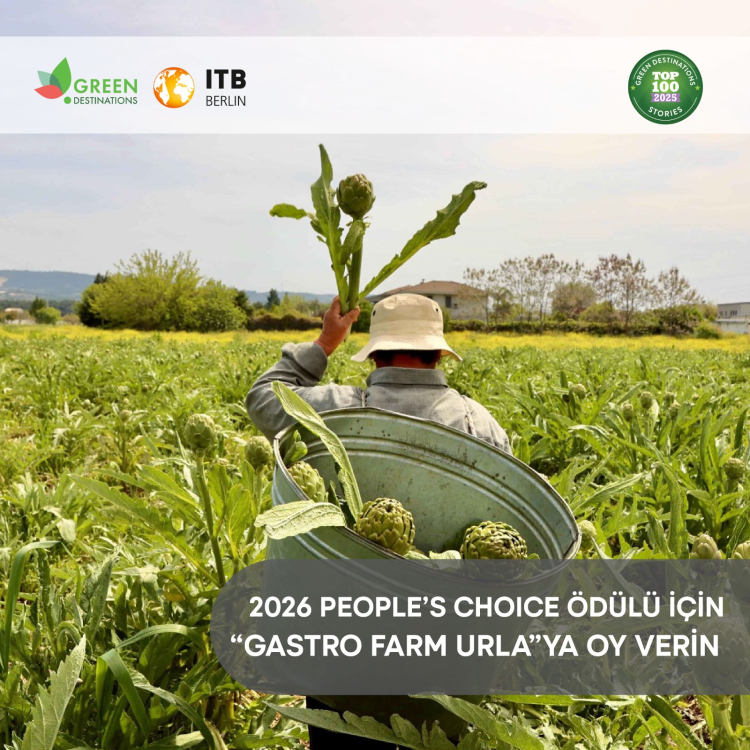 “Green Destinations 2025 En İyi 100 Hikâye” listesine giren ve dünya turizminin ilgisini çeken GastroFarm Urla, Efes Yaşam Tarlası Köyü ve Gümoz Kadın Kooperatifi Çalışmaları turizm hikayeleri, “2026 Green Destinations Halkın Seçimi Ödülü” için halkın desteğini bekliyor. Oylama, 15 Ocak 2026 tarihine kadar devam edecek. Oylama süresince her destekçi, çevrim içi platform üzerinden projelere oy verebilecek. İzmir’i desteklemek için Green Destinations tarafından oluşturulan https://greendestinations.typeform.com/to/ctfOU9M8 adresi üzerinden üç hikâye için de oy kullanılabiliyor.